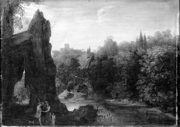 Cornelis Huysmans made this landscape painting using oil on canvas. Huysmans applied the paint in layers to build up the scene's depth. We can see his sensitivity for the material quality of oil paint in the way he used the medium to create the illusion of light playing across the landscape. Look closely and you can see the brushstrokes that give texture to the trees and the rocks, almost as if he’s sculpting the landscape itself. The subdued palette heightens the painting's melancholic mood. In the 17th century, landscapes were not just about pretty scenery, they often carried moral or allegorical messages. Here, the natural world is a reflection of human emotions, hinting at the transience of life. Huysmans's masterful handling of oil paint invites us to consider how the materials and the act of painting itself contribute to the overall meaning of the work. It reminds us that art is not just about what is depicted, but how it is made.