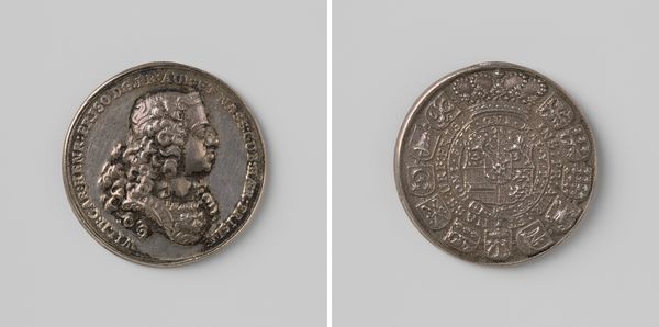 Curator: Up next, we have a medal titled "Slag op het Slaak," dating back to 1631, by Aert Verbeeck. It appears to be crafted from metal, probably silver. What’s your take on this? Editor: Well, instantly I get a feeling of, like, immense history. It's cool to hold history in your hand like this. Does anyone else feel like they are holding the world? I mean the ships are pretty clear. It makes me feel small in the face of time... in a good way, of course! Curator: Indeed! These kinds of medals functioned as portable history, often commissioned to commemorate significant events or achievements. "Slag op het Slaak" refers to the Battle of Slaak, a key naval victory for the Dutch against the Spanish. This battle was super important for the young Dutch republic back then, symbolizing resistance against Spanish rule. Editor: You know, that makes sense, knowing it was something you could hold makes it feel more like a keepsake. Like something my Grandma might hold. Almost lucky or symbolic of more battles to come? It’s funny to think that metal would be so useful. I’m interested how Aert depicted history so delicately in something hard as medal. Curator: He does capture it masterfully! Notice how he presents both a detailed portrait of a figure, probably a commander, on one side and a dramatic depiction of the naval battle on the other? The inscription adds a layer of official commemoration too, tying the individual to the collective struggle. Editor: Right? It makes you consider how "official" art is today. In an art institution everything we show could be "official" because, well, it is hanging in this very big fancy art gallery... which is interesting. Any thoughts for the museum goers? Curator: I would encourage everyone to consider how objects like these circulated in society, and shaped perceptions of history. Medals, prints, even everyday objects, are incredibly important sources for understanding cultural attitudes of the period, aren’t they? Editor: Absolutely. This little thing contains not only art and history, but like a reflection of cultural aspirations. It tells us what the Dutch thought of themselves! Curator: Precisely! Thanks for these really incredible observations. Editor: Anytime! History makes life much cooler.