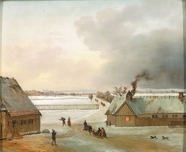 Hendrik Pothoven created 'Het Damrak in de winter' using pen, brush, and gray ink, crafting a scene dominated by muted tones and horizontal lines. The composition is neatly structured: a foreground of snowy ground, a middle ground where buildings and figures populate the space, and a hazy background merging with the sky. The limited palette reinforces a sense of cold and stillness. Pothoven's work is interesting in how it destabilizes the traditional landscape genre; rather than focusing on picturesque beauty, it captures the everyday of 18th-century urban life. The Damrak is depicted not as an idealized setting, but as a site of labor and transit, challenging viewers to reconsider their perceptions. The emphasis on the mundane and the structural clarity invite us to consider how our environments shape social experiences. Here, form dictates function, reflecting a broader cultural shift towards rationalism and empirical observation.