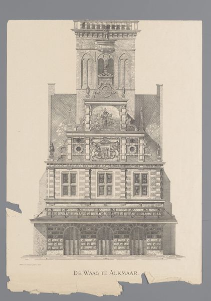 Editor: Here we have "Tower of the St. Paul's Church in Antwerp" from around 1682, by Johann Christoph Sartorius. It’s an engraving on paper. I'm really struck by the level of detail he’s achieved with what seems like very simple lines. What stands out to you when you look at this print? Curator: The immediate impression is of a highly organized visual field. Consider the precision of line, and the consistent tonal values that produce this clear image. Note, also, the structural logic that pervades this work. Do you observe how the artist utilizes repetition and variation within defined units, modules if you will, to guide the eye upwards? Editor: Yes, now that you mention it, there's this definite upward movement. It feels very… intentional. Curator: Precisely! Observe the recurring motif of the arched window, then consider its echoing within the decorative flourishes, creating visual harmony. The structure itself—the interplay between linear elements and volumetric forms—generates a satisfying tension. What of the interplay between light and shadow here? Editor: I see it, it almost feels mathematical in a way, this back and forth that builds to this ornamental peak. Almost a dance of geometry and form. Curator: Indeed. The semiotic analysis further underscores the meticulous construction. The spire culminating in a cross; the verticality suggestive of reaching. These choices reflect an aspiration, and an adherence to geometric balance and clarity. It reflects the architectural theories of the period. What do you think about the blank space around it? Editor: I hadn’t thought of that before, but it’s interesting that all the visual information about this tower is within this isolated picture space, almost like a model. Thank you, this was very enlightening! Curator: A worthwhile consideration. The dialogue between form and content enhances our aesthetic appreciation and furthers the semiotic readings of architecture in art.