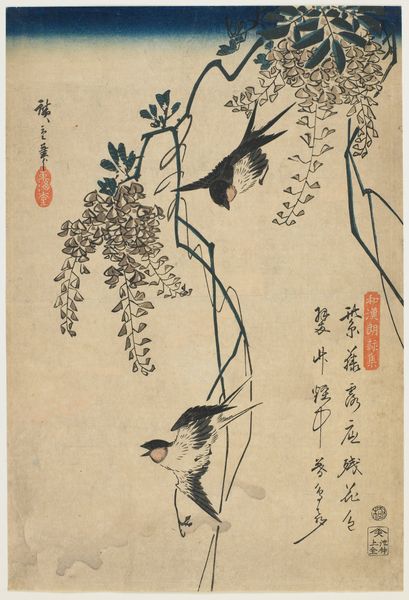 Editor: This is "Five-colored Parakeet on a Blossoming Apricot Tree," painted by Emperor Huizong way back in 1119. It’s an ink and color on paper piece, currently housed in the MFA, Boston. It has a wonderfully serene and contemplative mood about it... the bird seems to be pondering life. What are your initial thoughts on it? Curator: You know, looking at this exquisite painting, I'm reminded that Huizong wasn't just an Emperor; he was a true artist at heart! To see the world through his eyes—sensitive, observant, with a keen appreciation for beauty... it makes you wonder what his reign might have been like without the burdens of empire weighing him down. Notice how the delicate brushstrokes bring out the textures, making the bird and blossoms practically leap off the paper? Almost as if it’s inviting us into a shared space. Editor: It does feel very intimate, and immediate. The detail is astounding. Curator: Absolutely! And it's also a little sad, don't you think? Huizong aimed for perfection in his art and governance, but, alas, history took a different turn. This image serves as a moment frozen in time. Doesn’t it just invite contemplation on the impermanence of everything, including empires? Editor: That's a perspective I hadn't considered. Knowing his life story definitely colors the experience of viewing the art. It goes from observational to deeply philosophical. Curator: Exactly! Art has the power to hold these dialogues with time. Seeing the emperor through art – that's the fascinating magic, isn't it? Editor: It truly is. Thanks for helping me see so much more in this piece!