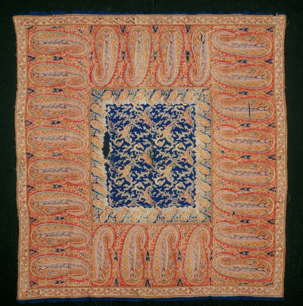 This is a Pulchari, or veil, made anonymously, likely in India, using embroidery on cotton. The material qualities here speak volumes. Notice the tightly packed stitches, building up stylized botanical patterns and paisley motifs, giving a rich and sensuous texture to the cloth. This wasn't just about decoration; it was about transforming an everyday material, cotton, into a precious object. The patient, skilled labour involved is evident. Consider the social context: Pulcharis like this were often part of a woman’s dowry, representing not just personal wealth but also the skill and artistry of the maker, probably a woman, and her family. Textiles like this existed within complex economies of production, trade, and consumption, tying together local craft traditions with global markets. Thinking about the Pulchari in this way – as a convergence of material, making, and social context – helps us move beyond simply admiring its beauty. We begin to understand its deeper cultural significance, challenging the traditional divide between art and craft.