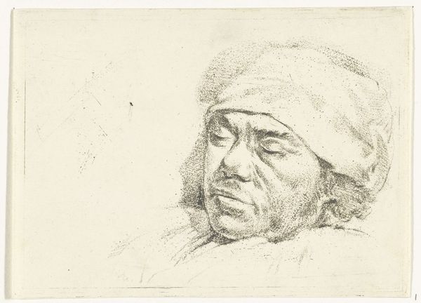 Willem Linnig the Younger made this etching, "Portrait of an Unknown Prelate," in the Netherlands sometime in the late 19th century. The print depicts a clergyman, identifiable by his cap and robes. Linnig employed the etching technique, which uses acid to corrode the unprotected parts of a metal surface to create a design. The result is a detailed, yet somewhat softened image, reflecting the artist’s interest in capturing the character of his subject. The late 19th century was a period of significant social and political change in Europe. The role of the church and its members became a contested subject in the public sphere. It is interesting that the artist gives us an image of a member of the clergy but leaves him unnamed, perhaps suggesting a commentary on the changing status and visibility of religious figures in society at this time. To fully understand this work, one might delve into the social history of the church in the Netherlands. Art historical research provides the cultural context that helps us interpret such a portrait and its potential commentary on its time.