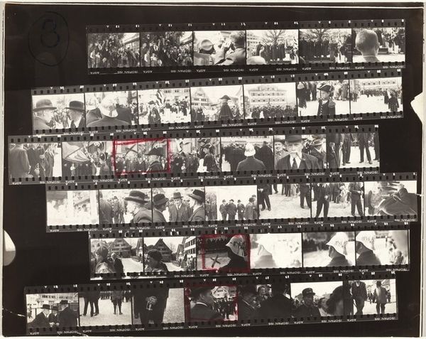 Robert Frank's "Guggenheim 650--San Francisco" is a photographic work that is full of process and intention. The use of film strips as a visual narrative device reminds me of the way a painter might approach a series of studies, each frame capturing a slightly different angle or moment, together revealing Frank's working through an idea. The stark black and white palette, grainy texture, and high contrast give the piece a raw, almost confrontational feel. Look at the frame with the red circle. It's like Frank's eye zeroing in, that one moment isolated from the rest, drawing our attention to a specific encounter or detail. Frank’s work often captures a sense of alienation and detachment, reminiscent of artists like Edward Hopper, known for his stark portrayals of modern life. And like Hopper, Frank leaves room for interpretation. There's no right answer, just a series of visual clues that invite us to engage with the work.