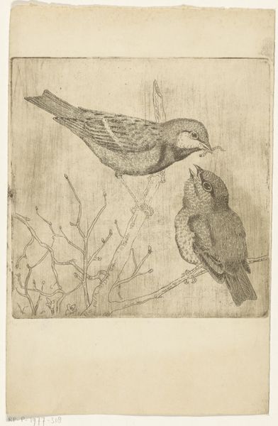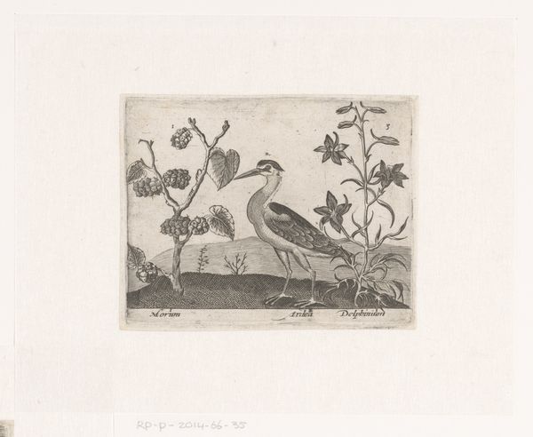 Theo van Hoytema created this announcement with a heron as part of his series 'Animal Studies' using the technique of lithography. The image's charm resides in the details achieved through lithography, a process that allows for finely graded tones and delicate lines. Look closely, and you’ll notice the textures of the heron’s feathers, the intricate patterns of the flowers, and the subtle reflections on the water’s surface. Lithography involves drawing on a stone or metal plate with a greasy crayon, then treating the surface so that ink adheres only to the drawn areas. This method allowed van Hoytema to achieve a remarkable level of detail. The heron is rendered with a naturalism born of close observation. The surrounding flowers are a testament to the beauty found in nature. This was a popular theme at the time and this print shows how even a humble announcement could be elevated to a work of art. By focusing on the materials, the making, and the context, we can fully appreciate the beauty and significance of van Hoytema's work, challenging the traditional boundaries between fine art and craft.