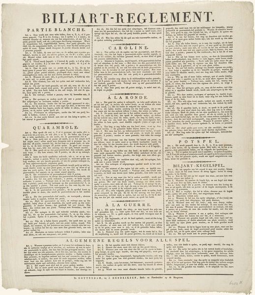 Editor: Here we have "Proclamatie van de provisionele representanten van het volk van Amsterdam, 1795", a print, presumably from 1795, currently housed in the Rijksmuseum. It's dominated by dense typography, almost resembling a textile pattern. It gives off a very formal and historical mood, as expected. What aspects of this declaration stand out to you? Curator: What I see is an artifact deeply embedded in the revolutionary fervor of the late 18th century. Amsterdam, like many other European cities, was grappling with the ideals of liberty, equality, and fraternity. Note how the text is presented bilingually – Dutch and French. What does that suggest to you about the intended audience and the political climate? Editor: It seems they were trying to reach as broad an audience as possible, including those influenced by the French Revolution. Was Amsterdam experiencing similar social upheaval at the time? Curator: Precisely! The Dutch Republic was in a period of immense political and social transformation. This proclamation, as a printed document, becomes a powerful tool for disseminating revolutionary ideas and consolidating support for the new provisional government. Consider the role of print culture in shaping public opinion during this period. Did publications like this shape perception? Editor: So, it wasn’t just about informing people, but also about shaping their beliefs and rallying them to a cause. And, the reference to Amsterdam suggests that it has specific relevance to Amsterdam and possibly its status? Curator: Yes. Also consider the language used and how the promises of equality and freedom resonate in a society marked by deep social and economic inequalities. Whose voices are amplified by this proclamation, and whose are perhaps still excluded? What does history suggest? Editor: That's fascinating. I never considered how a simple printed document could be such a complex reflection of the socio-political landscape. Thinking about who is included, excluded, and who published it gives me a richer appreciation of the context. Thanks! Curator: Indeed. By looking at this proclamation, we can understand not just the stated ideals, but the social and political struggles of Amsterdam at that moment in history, reminding us how artifacts carry layers of stories worth investigating.