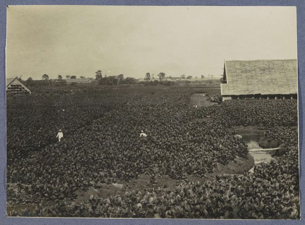 Editor: Here we have an intriguing photograph from the Rijksmuseum's collection, entitled "Tabaksveld op het Bindjey Estate van de Deli-Batavia Maatschappij op Sumatra (op dag van aanplant)," dating from around 1900 to 1920. It depicts a tobacco plantation, and it strikes me as both serene and a little unsettling, given the seemingly endless rows of crops and tiny figures dotted across the landscape. What story do you think this photograph tells? Curator: It's a very potent image when viewed through a historical lens. The photograph provides a snapshot into the colonial economies of the Dutch East Indies. Notice the figures in white; likely overseers directing labor. The rigid rows speak to the industrialized agriculture being imposed. Do you consider what such a regimented field meant for local populations and land use? Editor: It definitely gives me pause to think about the implications of the plantation. It feels far removed from some idyllic countryside scene. This makes me wonder about the intention behind capturing an image like this in the first place? Curator: Good question. Photographs like this served various purposes. They documented colonial "progress," reinforcing European dominance and projecting an image of cultivated and controlled landscapes ripe for economic exploitation. It also possibly promoted investment in such ventures. Editor: So it was a way of visually solidifying power structures? Curator: Precisely. It highlights who had the power to commission such images and how they intended them to be viewed in Europe. The "realism" of the image makes the statement appear like fact. Consider whose narrative is being prioritized in these depictions. Editor: That's a perspective shift. Initially, the photo seemed like a neutral recording, but understanding the historical context makes it feel charged and deliberate. Curator: Exactly. Art doesn't exist in a vacuum. Examining art within its historical and social contexts encourages us to question assumptions and delve deeper into the complexities of power dynamics and cultural exchange. Editor: This has given me so much to consider about photography's role in shaping historical narratives! Curator: Indeed! Understanding this context gives a completely new way of regarding a photograph like this.