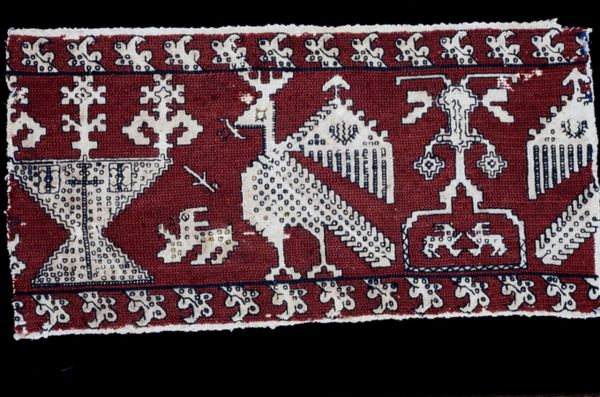 This striking textile border was woven by an anonymous artist, using an as-yet-unknown technique, and its origin remains a mystery. The repeating pattern, rendered in deep red and pale undyed linen, is reminiscent of stylized vegetal forms. Textiles can tell us a great deal about a society. Here, the unknown origin of this particular textile raises important questions about trade routes, cultural exchange, and the movement of artistic ideas across geographical boundaries. This object invites us to consider not only its aesthetic qualities but also the intricate network of social, economic, and political systems within which it was created and circulated. The border is a fragment, making it hard to guess at what institution it might have served. Was it secular or religious? Was its original owner wealthy or of more humble means? Art historians rely on a range of resources, from surviving documents and comparative studies to technical analysis of materials and techniques, to reconstruct the historical contexts of such works. By situating art within its social and institutional settings, we can understand it not just as an isolated object, but as a reflection of broader cultural values, power dynamics, and human experiences.