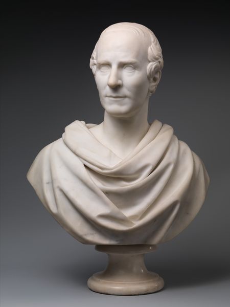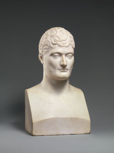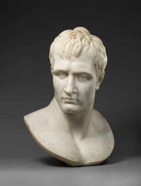 Curator: Let’s turn our attention to this imposing marble bust. Andrea di Pietro di Marco Ferrucci, sometimes just called Andrea Ferrucci, sculpted it sometime between 1507 and 1519. It is, as you can see, a portrait of Julius Caesar. Editor: Right, first impressions? A cool customer, wouldn’t you say? Almost…imperious. Though there's a weariness etched around his eyes too, like he knows something we don't. You almost want to offer him a cup of tea, tell him to unburden himself! Curator: Interesting take. I think that tension is intentional, though perhaps not for the reason you suppose. Renaissance portraits of figures from antiquity were often attempts to graft the weight of classical authority onto contemporary rulers. Power and intellect, melded into a singular image. Editor: Grafting, that’s a great way to put it! Looking closer at the details of his breastplate...the theatrical mask and the eagle with that almost self-satisfied look...it is a bold statement, definitely projecting power. It also strikes me how this sculpture feels like an echo. It embodies a yearning for a greatness that feels both distant and perhaps, tragically, unattainable. Like they're saying "Look back to this golden age!" even while knowing it’s irretrievably lost. Curator: Exactly! The inclusion of classical motifs—the eagle, the mask—directly links the subject with the grandeur of the Roman Empire. It invites viewers, then and now, to consider the enduring legacy and the cyclical nature of power. What rises, must eventually fall, and then someone else tries to put the pieces back together. Editor: A heavy weight to bear, immortalized in stone. Seeing it today, one wonders what a contemporary Caesar would look like, and how future generations might try to capture *our* age in marble. Maybe with a mask, after all...but perhaps of a different sort! Anyway, food for thought! Curator: Indeed, and it speaks volumes, literally, about how we continue to wrestle with the complexities of history and leadership even now. Editor: Well said. Thanks for untangling this masterpiece!