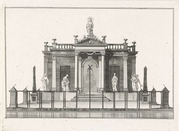Bernard Picart's etching depicts a triumphal arch for George I of Great Britain, showcasing a classical architectural style adorned with symbolic figures and reliefs. Dominating the arch are representations of Justice, Victory, and Fame, all classical motifs meant to celebrate and legitimize power. These aren't new; the imagery is as old as the Roman Empire, where triumphal arches were erected to commemorate military victories and honor emperors. The figure of Justice, often depicted with scales and a sword, harkens back to ancient Roman depictions of Justitia, embodying moral rectitude. Victory and Fame, frequently winged figures bearing laurel wreaths or trumpets, also have roots in classical antiquity. We can see the Victory motif recurring throughout the Renaissance, when it was recontextualized to represent civic pride. The persistence of these symbols over centuries reveals a deep-seated cultural desire to connect new power with the past, tapping into the collective memory of authority and accomplishment. The emotional impact is substantial, conveying a sense of awe, legitimacy, and enduring power.