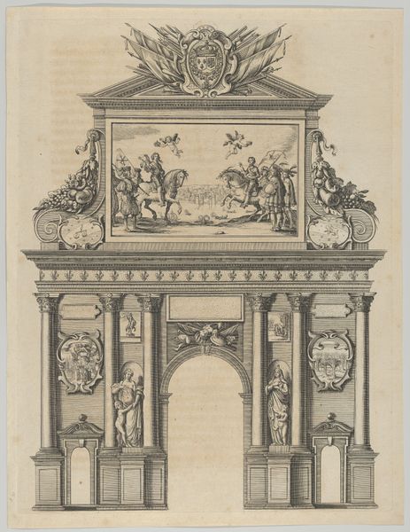 Editor: This engraving from around the 18th century, "Cross-section and Floorplan of an Indoor Grotto" by Gabriel Bodenehr, shows incredible detail. I'm struck by how this architectural design combines the awe-inspiring with a sense of contained intimacy. What do you see in this piece? Curator: I see the ambitions and values of a particular moment in European history, one fascinated by control, display, and the natural world. Consider the grotto itself: a space designed to mimic a natural cave but realized with meticulously planned artifice. Editor: So, it’s less about nature and more about… the *idea* of nature? Curator: Precisely! These weren’t places of wilderness, but theatrical settings meant to evoke wonder and reinforce the patron's power and taste. How do you think prints like these served that function? Editor: I suppose the ability to disseminate architectural ideas, to create copies for a wider audience, extended that influence. This engraving helps normalize or idealize these designs. It’s interesting how art becomes a tool for shaping perceptions of status and sophistication. Curator: Exactly! Furthermore, the very act of rendering a grotto—an enclosed, private space—as a public image shifts its purpose. It transforms a space for personal enjoyment into a symbol for broader societal consumption and aspiration. Editor: So, an architectural blueprint becomes a piece of political imagery! It’s fascinating to see how this piece reflects and reinforces the social hierarchies of the time. Curator: And perhaps gives us today some insight into the ambitions of those societies. A fascinating, if indirect, role for art, don’t you think?