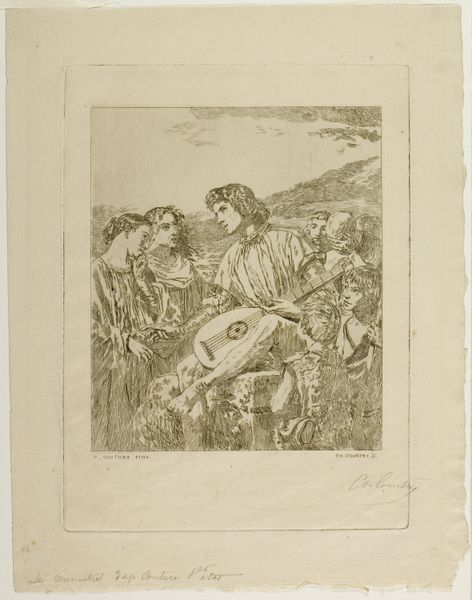 Jan Toorop created this print titled 'Two Women Mending Nets, Katwijk aan Zee' using etching. During Toorop's time, the Netherlands was undergoing rapid modernization, which brought about significant social and economic changes. As you observe the fisherwomen in the print, consider the intersection of gender, labor, and identity. What does it mean to depict these women engaged in the act of mending nets? Traditionally, this was unpaid labor. Through art, the unseen labor of women, essential to the fishing industry, is made visible, giving it recognition. Toorop's print offers a glimpse into the lives of working-class women and their contributions to society. It prompts us to reflect on the representation of women and their roles in shaping their communities and national identity.