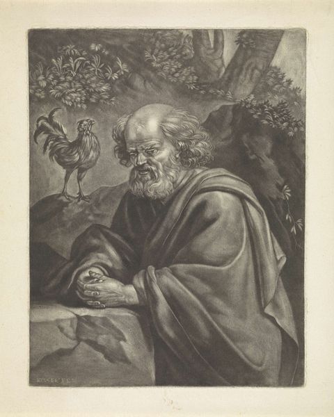 Curator: Here we have “Petrus in gebed,” or "Peter in Prayer," a drawing that resides here at the Rijksmuseum, dating from sometime in the 18th century, created by an anonymous artist. Editor: My initial impression is the intensity of the emotion rendered through the seemingly simple medium of pencil. There's a palpable sense of humility and desperation in his posture. Curator: It’s fascinating how such strong emotion can be shown through the specific historical lens that is prayer. We see Peter, identified by the keys at his side. This references his role as the first Pope. But the prayer could speak to his role as a repentant apostle who denied Jesus. Editor: Precisely. And look at how the material choices and the artistic labor inform this. The seeming ease of pencil on paper belies the precision required to convey the texture of skin, the weight of the book and keys. This wasn’t some casual sketch; it’s a crafted object, produced through skilled and practiced labor. Curator: Right, and contextually, consider the production of images and their impact within society during this period. This depiction served perhaps to remind the contemporary audience the importance of the Catholic Church's teachings in a predominantly Protestant nation during the Baroque period. It uses the universally familiar visual vocabulary to reinforce established dogma. Editor: But even further than the intended purpose we see the work as a representation of value, that an anonymous laborer meticulously crafted these representations which at the end are themselves commodities for exchange on the art market. And look! Red chalk enhances Peter’s features; such subtle use to breathe life and humanity to his prayerful figure! Curator: Absolutely, and what makes it all the more compelling is how those materials combined, were not simply about artistic talent, but also religious and social purpose during the 18th century, that resonates profoundly even now. Editor: Agreed. Its ability to encapsulate raw vulnerability using only pencil, chalk, paper and human labor really leaves you contemplative about humanity’s inherent quest for both meaning and repentance.