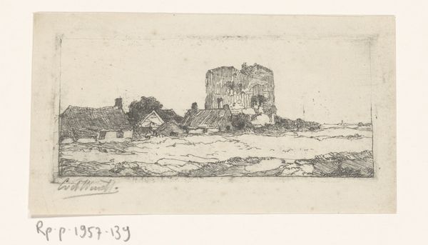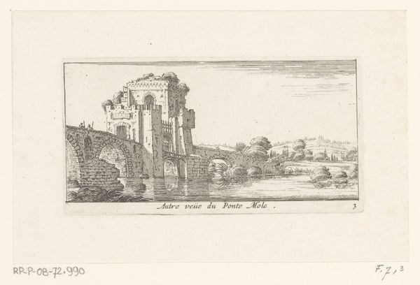 Joseph Charles Cogels created this evocative etching, 'Castle Ruins with Access Bridge', sometime before his death in 1831. Born in an era of revolution and political upheaval, Cogels captures a landscape steeped in history, yet marked by decay. Notice how the formidable stone structure is softened by the encroaching foliage and reflective waters. The ruin embodies a romantic ideal – a powerful symbol of time's relentless march. Yet, this representation of history is not neutral. Castles are typically seats of power, dominance, and often, oppression. The decaying castle then offers a visual metaphor for the decline of aristocratic power. It prompts us to consider who is absent from this image. Where are the people who once lived, worked, and suffered within these walls? Cogels’ etching invites us to reflect on the stories we tell about history and the narratives that often remain untold. It’s a quiet, contemplative piece that speaks volumes about power, loss, and the enduring landscape.