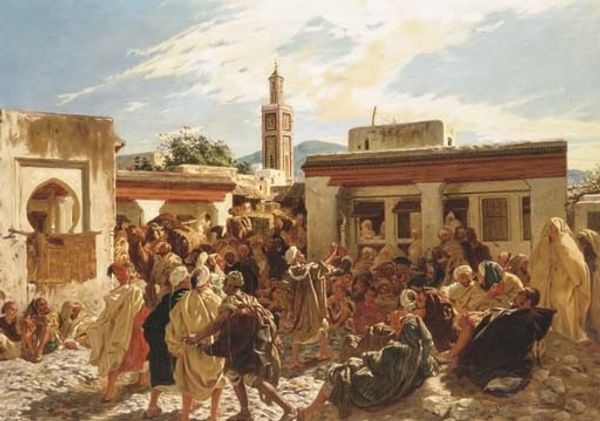 Giulio Rosati painted ‘An Arab Market’ using oil paints, probably in his studio in Italy, not on location. The painting shows a romanticised view of a bustling marketplace with a plethora of North African goods. What's interesting here is the implicit tension between the artist's labor and that of the many artisans who produced the items depicted. Rosati likely never engaged with the cultural context he portrays, which contrasts sharply with the extensive traditional knowledge required for creating carpets, ceramics, and metalwork. These highly-skilled crafts, integral to local economies and cultural identity, are here reduced to mere props in an Orientalist fantasy. Rosati skillfully captures the textures and colors of the scene, but his method – the application of paint on canvas – stands apart from the processes he depicts. It is a reminder of how easily the labor embedded in material culture can be overlooked. We can appreciate the aesthetic appeal of Rosati’s painting, but it’s also vital to acknowledge the skill and effort behind the objects that populate this imagined scene.