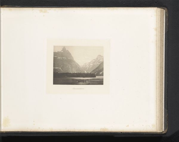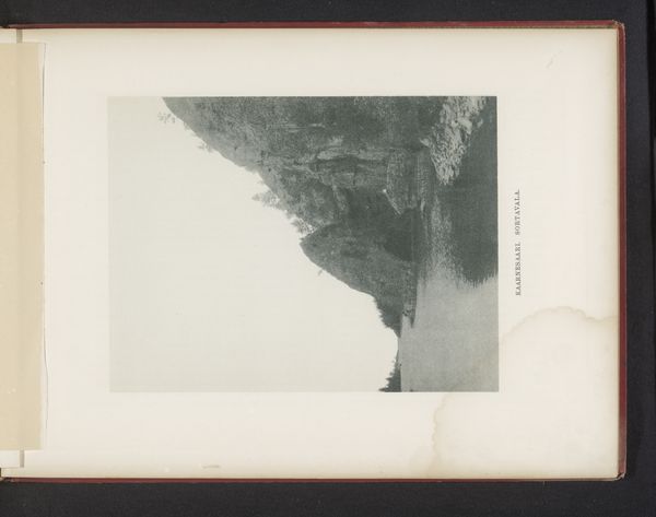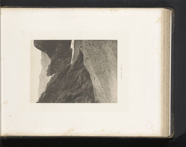 Curator: Frank Jay Haynes created this gelatin silver print, titled "Inspiration Point, Grand Canyon," likely sometime before 1891. What’s your first take on this arresting landscape, Editor? Editor: Vertigo! The converging lines create such a precipitous perspective; it feels like I’m dangling over the edge. The monochrome palette really heightens the stark, raw beauty of the rock formations. Curator: The title tells us of a search for elevated meaning and speaks to the way sublime landscapes were often used to locate the divine in the late 19th century. You might see the influence of the Hudson River School here in the desire to connect spirituality and the environment. Editor: Right, there’s a dialogue being created through those tonal shifts between light and shadow – creating an implicit harmony out of what could just as easily be visually chaotic. Curator: Definitely. It presents a seemingly infinite space for potential… transformation? Exploration? The “inspiration” of the title resonates on multiple levels: geographical, aesthetic, and spiritual. It calls back to a period where American identity was intimately tied to westward expansion and ideas about Manifest Destiny. Editor: But look at how Haynes frames this "infinite" space. There is that tight composition forcing our eyes on a stark play of mass and void that really holds my attention more than a grand sense of limitless possibility. The tight focus emphasizes the sheer physicality of this canyon space. Curator: Yes, this work balances romantic idealism with concrete reality. The land held promise, yes, but also challenges to overcome. Perhaps the photographic medium lent itself to a more realistic view than idealized paintings could offer. Editor: I concur, although, Haynes' masterful use of tone makes the rocks into semi-abstract blocks of shape, which allows us to engage with the image on a deeply textural, sensual level as much as one of pure representation. Curator: An interesting synthesis, then, of exploration and aesthetic reduction. A pre-modern ecological encounter, and an exploration into modernist art? Editor: Absolutely. What started as a means of geographically understanding a place, developed into an intimate and enduring artwork, where geology became its own expressive form.