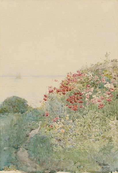 Childe Hassam made "Celia Thaxter's Garden" with oil on canvas, working in an Impressionist style. Hassam has translated the visual experience of Celia Thaxter’s garden into a mosaic of paint. Notice how the materiality of oil paint influences the image. It’s not just a rendering of the garden, but also an arrangement of brushstrokes. We see the garden, but we’re also aware of the artist's hand, and the way he methodically applied each dab of pigment. Hassam was working within a tradition of plein air painting – taking his easel into nature. This practice emerged with the availability of pre-mixed paints in tubes, enabling artists to capture fleeting impressions of light and color, and encouraging a more intimate connection with the landscape. By focusing on the sensory experience of the garden, Hassam invites us to reflect on the beauty of nature and the process of artistic creation itself. Ultimately, "Celia Thaxter's Garden" bridges the gap between observation and active engagement, celebrating both the subject and the artist's craft.