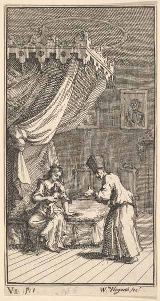 This drawing, of unknown date, depicts Henry IV in audience with a cardinal. The anonymous artist employed ink and wash on paper. The composition immediately conveys a sense of structured formality. Observe the architectural setting and the careful arrangement of the two figures within this constructed space. The cardinal, standing, and Henry, seated on an elaborate throne, are positioned to create a dynamic interplay of vertical and horizontal lines. This careful arrangement underscores the power dynamics at play, with Henry's seated position perhaps indicating his royal authority, while the Cardinal stands in deference. The limited tonal range and use of wash create a somewhat dreamlike quality, and the sketch-like quality destabilizes a clear narrative, inviting viewers to consider the symbolic weight of the encounter rather than a literal depiction. Consider how the artist uses form to reflect the complex negotiations of power and influence.