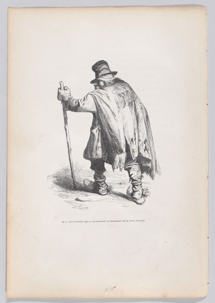 Curator: What a strange and beguiling little figure. I find its caricature unsettling. Editor:Indeed! Here we have J.J. Grandville's "Mister Vulture," created around 1840. It’s currently held here at the Metropolitan Museum of Art. This is a pen, pencil, and ink drawing—likely intended for print reproduction given its precise linework. Curator: The lines are exquisitely controlled! Observe the contrasting textures achieved solely through hatching and stippling. Consider the geometry too. The circular vignette isolates and intensifies the figure, trapping its unsettling gaze. Editor: Absolutely. It is interesting to view Grandville's art through the lens of social critique and caricature, popular themes throughout the Romantic period. There are echoes of Daumier here. Curator: Yes, but Daumier possesses a bluntness absent in Grandville’s almost unsettling subtlety. Note how the feathered textures suggest decay despite the elegance of his attire. Editor: That's precisely what makes Grandville so effective, don't you think? He disguises a scathing indictment within an accessible visual language. We see elements of anthropomorphism, perhaps aiming at figures within French society during the time. He often satirized political figures. Curator: Semiotically, the Vulture reads as predatory, parasitic. He literally consumes—through visual metaphor—the hard earned resources of others. A potent condemnation, if I do say so. And consider how the inscription beneath anchors the image to a very specific time and location. Editor: The vulture becomes not just an individual, but a representative of a systemic ill, magnified through widespread circulation via print. And it clearly positions this "vulture" as a property owner—a man profiting off the backs of others. It speaks volumes about the changing role of the elite in 19th-century French society. Curator: What is striking here is the density, the visual sophistication embedded in what may appear to be simply, "a caricature." I see complexity and purpose. Editor: Grandville's "Mister Vulture," offers us insight into French society of that era and serves as a powerful statement on the socio-political context of the 19th century. Curator: Indeed. An analysis of line and form uncovers the artist’s complex visual system—he masterfully combines representation and commentary within its borders.