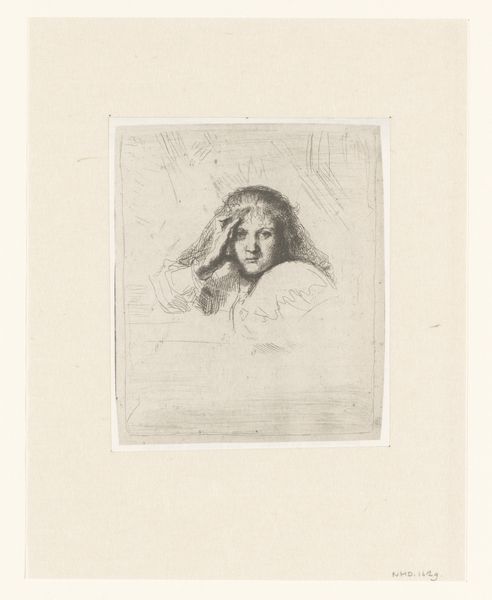 Editor: So, this is Louise Danse’s "Portrait of an Unknown Young Woman," made around 1890. It's a delicate pencil drawing, and it really strikes me as introspective, almost melancholic. What do you see in this piece? Curator: Oh, Louise, you've captured a fragile moment. For me, this isn't just a drawing, but a whisper of the artist’s soul. See how the delicate lines create a sense of ethereal beauty. Almost dreamlike, wouldn’t you say? There's an unspoken narrative here. The subject's downward gaze… what story does she hold within? I am also very curious to know why this work is entitled with “Unknown Young Woman”. What are the underlying conditions and history behind this designation? Editor: That's beautifully put. The lack of detail definitely contributes to the sense of mystery. And the "unknown" aspect is intriguing. Does it perhaps remove her from a specific social context, universalizing her experience somehow? Curator: Exactly! The 'unknown' acts as a kind of blank canvas, no? We're invited to project our own emotions and experiences onto her. Louise masterfully captures this sense of universal feeling. She uses the pencil like a painter uses a brush, soft, gentle strokes creating so much emotional depth! What a privilege it is to share in such a moment. Editor: It really makes you wonder about the power of a simple pencil and paper. Thanks, that was illuminating! Curator: My pleasure. May we always find beauty in the simplest forms and let the 'unknown' spark our imagination.