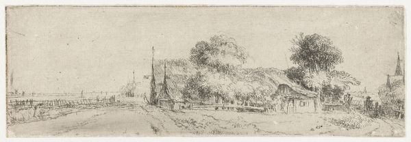 Philips Koninck created "Two Farms with Pointed Gables," using etching techniques to create the image on paper. Koninck lived during the Dutch Golden Age, a time of prosperity when the Netherlands was a major power in trade and art. The etching presents a serene view of rural life. The farms appear modest, reflective of the values of hard work and simplicity often associated with the Dutch middle class. The expansive landscape creates a sense of space, a common feature in Dutch landscape painting which mirrors the country's flat terrain. But I wonder, whose labor sustains this view? The focus on the picturesque often obscures the lives of those who worked the land and whose experiences were far from idyllic. In looking at art like this, it feels important to consider whose stories are told and whose are left out. It reminds us to critically engage with idealized representations of the past.