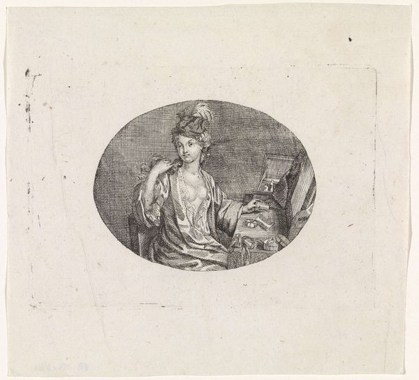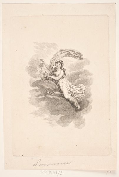 Curator: This pencil sketch is called "Vrouw met kind," or "Woman with Child," by Theodoor Schaepkens, who was active between 1825 and 1883. It’s part of the Rijksmuseum collection. Editor: It's incredibly delicate! The figure seems to almost dissolve into the background, giving it a dreamlike, ephemeral quality. Curator: Indeed. Schaepkens' technique here is quite revealing; it shows his masterful ability to evoke texture with a minimalist approach. Notice how just a few carefully placed lines define the woman's draped clothing and the child she is holding. The overall composition is very economical. Editor: It’s funny, there’s something almost old-fashioned about it. The style kind of echoes engravings from much earlier centuries. Sort of a ghostly presence. Curator: Perhaps. It's tempting to view the "old engraving style" as intentionally created. This technique adds to the sentimental theme so common in depictions of mothers and children from this time. Do you see, however, how the very lack of clear definition, contributes to a sense of universal maternal experience, a meditation on motherly love? Editor: Yes, I see what you're getting at. It’s a rather intimate portrayal. It almost seems as though this could have been a private study—pulled directly from a sketchbook, where the artist wasn’t aiming for any grandeur. I'm especially captivated by the mother’s upturned gaze, her eyes look like they seek light from another source! Curator: Exactly, It has this raw energy of observation from life that’s almost magical! The fact that the work is, in effect, unfinished, leaves space for the imagination. The work's enduring appeal may be rooted in the feelings of serenity, devotion, and even nostalgia. What are your impressions after all of that? Editor: I must admit I felt a newfound sense of connection and an almost reverent contemplation for mother and child when I initially felt detached by what I thought of as an old engraving. It made me really wonder what else a mother may have thought. Curator: It can be quite remarkable how one piece of art can be open to endless personal insights depending on how it’s viewed.