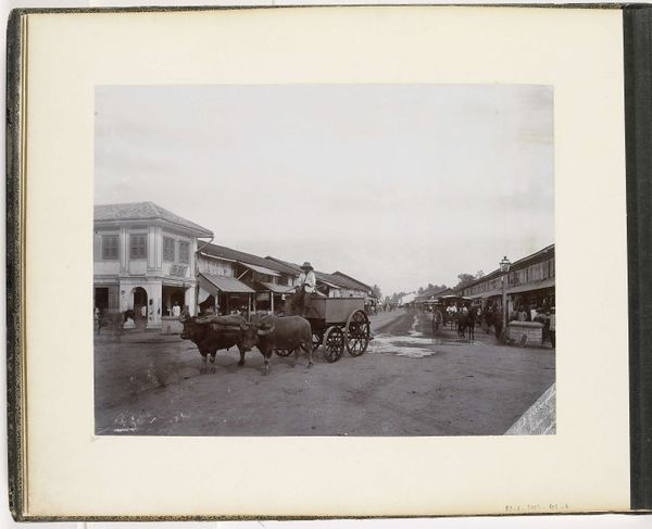 Curator: Before us is a daguerreotype, a photograph titled "Street View of North Bridge Road in Singapore" dating from the late 1860s to 1880, made by G.R. Lambert & Co. which resides in the Rijksmuseum collection. What are your first impressions? Editor: The first thing that strikes me is how... empty it feels, despite supposedly depicting a bustling street scene. There's a sense of stillness, a world caught between moments, or maybe the colonial gaze being fixed upon the streets of Singapore. Curator: The long exposure time of early photography definitely contributes to that effect. Notice how only a few figures are sharply defined; others appear as ghostly blurs, a kind of pre-digital impressionism achieved through technical constraint. The formal elements of the photograph work to highlight the details of the streetscape – the structures and built environment. Editor: I find myself dwelling on those sharp details. "Prince of Wales Tavern," declares one sign – a blatant marker of colonial presence and influence. The carefully composed image, focusing on the details of a rapidly modernizing cityscape, serves as a potent reminder of cultural exchange. What are we *not* seeing, or not meant to see? Curator: That colonial dimension is key. This image speaks to a fascination with the ‘exotic’ East, popular at the time. Yet the structure provides symmetry and ordered geometry. Focus on the planes receding, creating a calculated sense of depth and the stark contrast illuminating each column’s deliberate placement. Editor: True, but it's precisely that seemingly objective 'order' that concerns me. It feels like an assertion of control, a way of cataloging and claiming space, people, and culture through the lens of the colonizer. What does it mean to capture and display Singapore in this way? It makes me consider whose narrative is being framed and consumed by museum audiences then and now. Curator: That’s a necessary provocation. Yet as a historical document, the technical skill involved should not be overlooked, even if this does also tell a complicated socio-political story of encounter and perception. Editor: Absolutely. These aesthetic choices were inevitably infused with power dynamics and cultural biases. They’re a crucial facet in our interpretation. The history we are now studying can now be seen with some context to consider how they made their artistic decisions during those complex periods.
