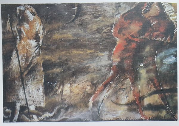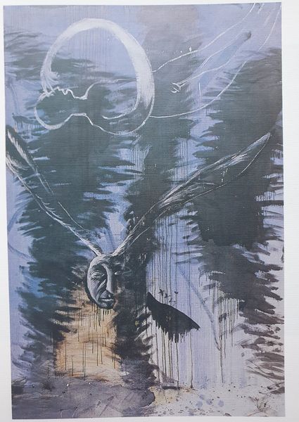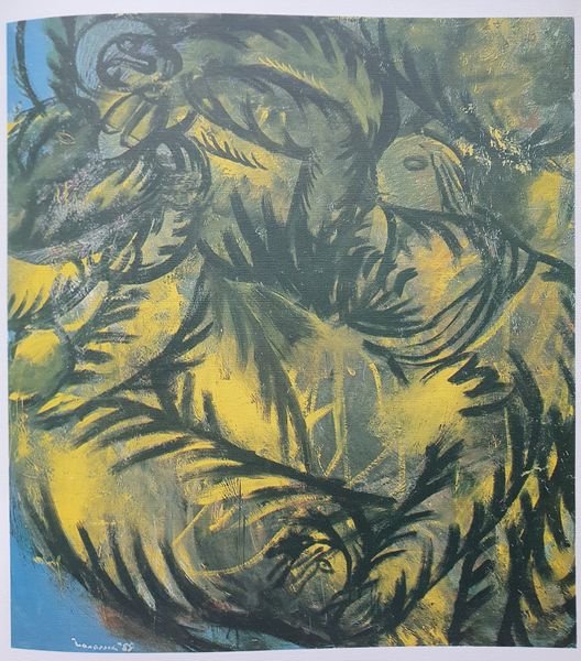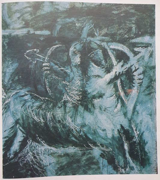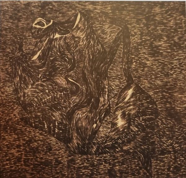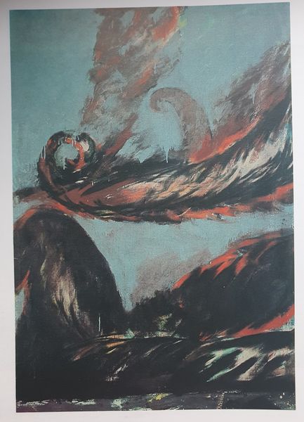 Curator: I’m struck immediately by the sheer energy of this piece. It's almost violent in its application, wouldn't you agree? A raw, almost visceral feeling jumps out at you, wouldn’t you say? Editor: Indeed. This is Oleg Holosiy's "Attiss II (2nd part)", completed in 1989 using acrylic paint. It's interesting to consider this work within the political and social context of the late Soviet Union, specifically the evolving notions of identity and individual expression that were emerging at the time. Curator: The shades, that swirl of reds and blacks – it almost feels like something is exploding from within. It’s restless. There is this yearning for some sort of... release? Does that resonate for you at all? Editor: I appreciate the way Holosiy uses abstraction to express emotions that might be difficult to articulate directly. The urgency in the brushstrokes evokes a sense of societal upheaval but also reflects a deeper existential struggle, resonating with broader discussions of cultural identity in the wake of post-Soviet artistic movements. The formlessness could be seen as resistance. Curator: I see it too – this is rebellion in color, absolutely! What gets me, though, is this strange beauty in the chaos. He doesn’t shy away from ugliness; rather, he embraces it. What does that scream, really, but a truth, unfiltered? Editor: That "ugliness," as you describe it, challenges conventional artistic values and dominant cultural norms. The deconstruction of form mirrors a deconstruction of political ideology. And to think this all stems from mere acrylic! Curator: In terms of its process it must have felt almost ritualistic. Did Holosiy paint quickly do you think, almost involuntarily? The textures seem applied from so deep down! The work, to me, echoes an experience, rather than merely representing one... A beautiful piece... very raw. Editor: A crucial reminder that art often transcends aesthetic appeal, it confronts and questions. “Attiss II (2nd part)” embodies the historical moment and urges us to reflect on the continued relevance of dissent in the face of oppression and political shifts. Curator: Absolutely, a vital reminder indeed, but I can’t help thinking what the work meant to Holosiy himself and his creative spirit... the beautiful thing about it is we are still able to ponder, consider and admire!