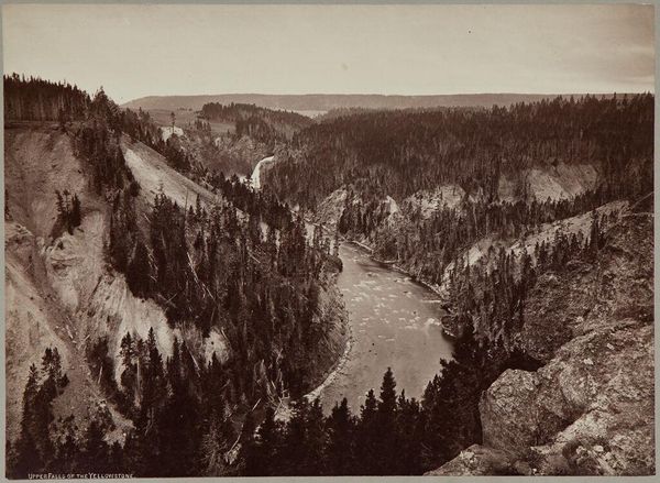 Curator: Looking at this, I am struck by the light; how it bathes the rugged landscape in a soft, almost ethereal glow. It's an invitation, a suggestion of journeys untold, doesn't you think? Editor: Yes, there's a certain luminosity, a dreaminess to this gelatin-silver print from between 1851 and 1900, by A. Wimmer, titled "Semmeringspoor door een berglandschap, Oostenrijk," or "Semmering Railway Through a Mountain Landscape, Austria." But this romantic vision, the almost picturesque quality, feels somewhat at odds with the reality it depicts. The Semmering Railway, after all, was an emblem of industrial progress, built with immense human cost. Curator: Progress always comes with a price, doesn’t it? The landscape sighs as humanity weaves their way. To your point though, perhaps Wimmer’s focus isn’t so much on the engineering feat as on the juxtaposition – the taming, if you will, of nature’s grandeur. The tracks snake around the mountain's contours like the path to self-discovery. I feel it calling to me... like a passage, you know? Editor: Absolutely. But think about that "taming." The railway literally cuts through the mountain, disrupting ecosystems, displacing communities perhaps, all in the name of connection and expansion. Who is it really serving? How complicit were advancements in infrastructure and photography of the period? I think it is important to recognize that landscapes are never neutral. This image aestheticizes a colonial landscape and the artist participated. The Romantic style almost tries to disguise the raw extraction it depended on, by using the light like that you described. Curator: Ooh! I see now... The artist almost presents us a conundrum: we find something both awe-inspiring and destructive. To create something functional as a source of freedom, the old world is now the new. It is a little dark when you think about it, like, "Do I love what humans do, or do I hate it?" Editor: I feel that art from this period should also encourage critical conversations and help us challenge power imbalances of that time. I always welcome art that reflects what can be improved now and invites that open dialogue. It should be an art for everyone. Curator: Exactly, so perfectly said. What at first glance seems like a tranquil vision can ripple into quite some depth if we care to look.