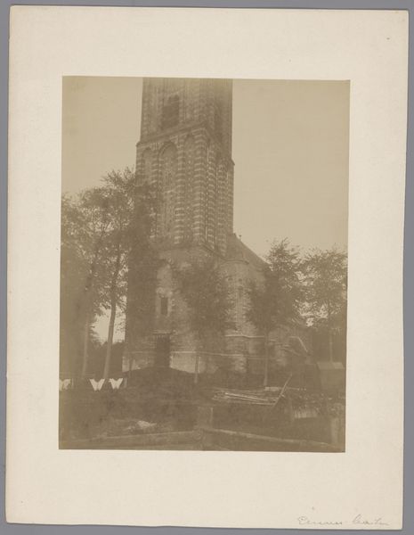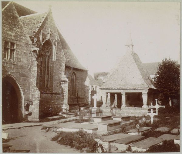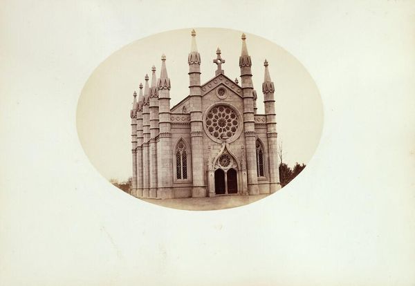 Curator: What a remarkably composed photograph, steeped in the visual language of 19th-century Romanticism! This image, "Tombe in de tuin van Villa Pallavicini in Pegli," captured between 1870 and 1890, presents a study in the symbolic weight of monuments within landscape. What is your initial reaction to this? Editor: Somber elegance. The muted tones emphasize the stillness and contemplative mood. It reminds me of those elaborate Victorian cemetery designs, celebrating the lives of those gone. What can you tell me about its origins? Curator: Certainly. The photographer, Celestino Degoix, has framed the architecture beautifully. You see how the tomb, likely a family mausoleum, functions as a kind of secular temple? Note the bronze sculpture, a lion atop its roof -- a classical guardian. Degoix uses realism in order to show a constructed setting imbued with emotional intensity. The statue almost looks like an attempt to make real an ancient legend. Editor: Yes, the lion evokes that sense of timeless power and vigilance. It speaks to how elites have always utilized architecture to establish enduring legacies. Were photographs of similar sites and monuments popular at this time? Curator: Precisely! This photograph feeds into the late 19th-century culture of memorialization that flourished across Europe. But more than that, I see layers of appropriation here; Italian Renaissance forms blending with those of antiquity. A sculpture within a building is contained inside a photograph; each media containing the last like nesting dolls. The meaning accumulates. Editor: It makes me think about the cultural politics embedded within this practice. Commissioning artists like Degoix to depict elite spaces allowed families like the Pallavicini to actively shape their public image and perpetuate social hierarchies. Curator: I concur! It becomes less a personal expression of grief and more a performative act intended to solidify one's social standing and to declare that this family, this monument, will live on. The very act of photographing it gives it another life. Editor: In a way, this image serves as a document, capturing not just the physicality of the tomb, but also the social ambitions and the ideological currents of its time. I do love that these kind of images show our obsession with self and permanence hasn't shifted much through the centuries. Curator: Exactly. I appreciate how revisiting images such as these compels us to reflect not only on individual artistic achievement, but on the socio-cultural values perpetuated through its visual symbolism and legacy. Editor: A truly fascinating blend of history, personal expression, and power, all captured in a single photographic frame.