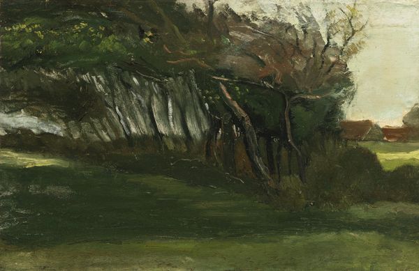 Curator: Look, let's consider this canvas now. This is Matisse's "Tahiti Landscape," painted in 1931. It's an oil-on-canvas work that shimmers with light and the thick impasto marks throughout the scene. Editor: Immediately, it gives me this raw, almost urgent feeling. Like a snatched moment. Not necessarily representational of what a jungle looks like but...it’s his memory of a jungle. Or his gut reaction. A dense, pulsing green heart. Curator: Well, the painting emerged at an interesting time for Matisse. Although titled "Tahiti Landscape," it was completed nearly three decades after his brief sojourn there in 1901, quite removed from direct plein-air observation. These vibrant strokes are memory meeting the moment in the studio. Editor: Memory filtered through feeling, exactly! The way the light dances and pools on the leaves – those hefty strokes – tells me that this wasn't so much about perfectly capturing what was "there," as accessing the felt experience. You almost smell the damp earth. It’s immediate and quite transportive for me. Curator: Precisely. We should also remember how Matisse operated within the wider art market; exotic landscapes sold, and "Tahiti" conjured fantasies of the South Seas, playing into existing desires and expectations. Was it purely from memory, or was there a strategic calculation? Editor: I think it’s always a dance, isn't it? Even the most 'pure' expression happens within a context. To me, the painting reads less as a literal rendering and more like a visceral expression – a riot of sensation on the canvas, which is why I feel like it transcends some possible motive. Like a painter being taken over...you see that energy first and the "strategy," if there, dissolves away. Curator: Agreed; this particular landscape also encapsulates how Post-Impressionist artists worked with vivid colors, divorced from faithful naturalism to prioritize form, structure, and expressive effect, of course. It became an extremely marketable position over the 20th century. Editor: And somehow it’s this push and pull between that almost raw expression and how he knew it might be received, or not, that gives it even more energy for me! So many landscapes lack a real beating heart! Here it breathes... Curator: Indeed. It makes me consider the role of memory and expectation, the individual and the institution in constructing our aesthetic experiences. Editor: Leaving us with more questions, ideally, than answers! Because who wants a story that's neatly tied up with a bow?