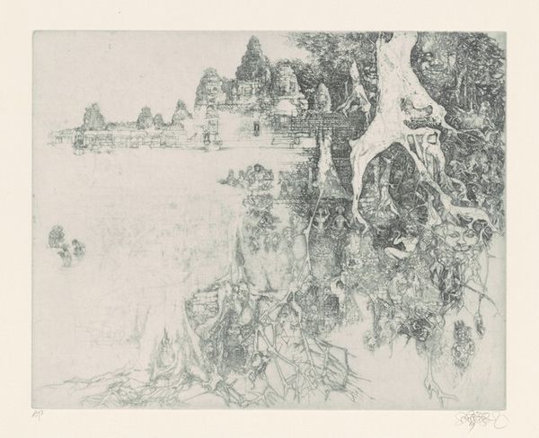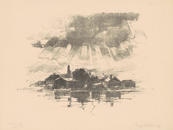 George Hendrik Breitner made this painting of warehouses in Amsterdam with oil on canvas. It looks like he approached the canvas with a loaded brush, capturing the scene with bold, gestural strokes and a muted palette. This suggests a process that's both spontaneous and deeply attuned to the atmosphere of the location. The painting's material qualities are striking. Breitner uses a limited range of colors, mostly grays, greens, and browns, creating a sense of dampness and overcast skies. The paint application varies from thin washes to thick, textured areas. Look at the reflections in the water, the brushstrokes are loose and broken, giving the impression of movement and light on the surface. It reminds me a little of Corot's landscapes, with a similar emphasis on capturing the fleeting effects of light and atmosphere. But Breitner's work feels more grounded in the everyday, with a focus on the industrial landscape of the city. It's a reminder that art isn't just about beauty or perfection, but also about capturing the messy, complex realities of the world around us.