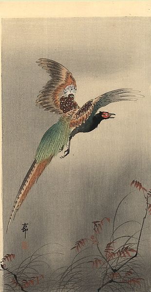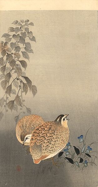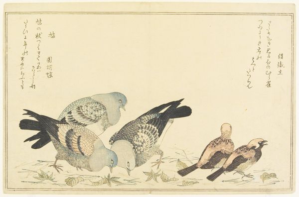 Editor: So, this is *Partridges (Shako) and Rapids* by Kitao Masayoshi. I’m struck by how the artist captured the bird's stillness against the dynamic rapids. How might we interpret this juxtaposition? Curator: I find it fascinating how Masayoshi’s work allows us to explore the intersections of nature, representation, and cultural identity in Edo period Japan. Consider the context of *Kaihaku raikin zui*, this compendium highlighting imported birds. What does it signify to classify and depict “overseas” species? Editor: It sounds like the artist is showcasing Japan's view of the outside world. Curator: Precisely! The work invites a dialogue about Japan's relationship to global trade and the visual language used to categorize and understand the exotic. By studying these depictions, we gain insight into the power dynamics at play. Editor: That’s a lot to consider! I’ll definitely look into that.