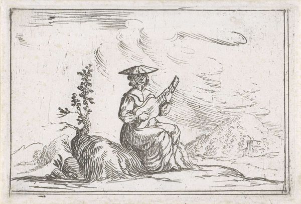 Orazio Borgianni made this print, depicting God appearing to Moses in the burning bush, sometime around the early 17th century. It is made with etching, a printmaking process that relies on the corrosive action of acid. The artist would have started with a metal plate, coating it with a waxy, acid-resistant ground. Using a needle, he would have drawn the composition, exposing the metal underneath. When the plate was submerged in acid, the drawn lines would be bitten, creating grooves. The longer the plate was exposed, the deeper the lines. To make the print, ink was applied to the plate, filling the etched lines, and then the surface was wiped clean. Finally, paper was pressed against the plate, transferring the ink and creating the image we see here. The fine, precise quality of the etching technique emphasizes the drama of the scene. The controlled lines add to the sense of awe and the divine presence. It's a reminder that even in the age of mechanical reproduction, the artist's hand and technical skill were crucial in conveying spiritual themes and cultural narratives.