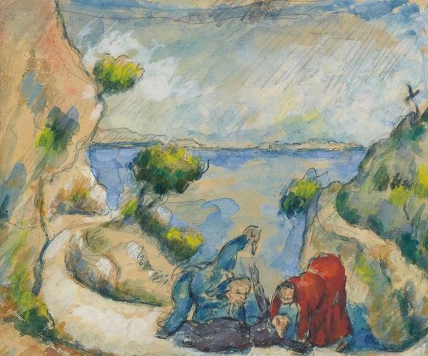 Editor: This is Renoir’s "Grape Gatherers," painted around 1888 or 1889. It’s an oil painting showing two women resting, maybe after harvesting grapes. The brushstrokes are so soft; it feels like a glimpse into a relaxed, sunny afternoon. How do you interpret this work in relation to its historical context? Curator: Well, it’s crucial to remember Renoir’s context: he's part of a broader shift in art towards capturing everyday life, yet also presenting idyllic scenes detached from the harsher realities of rural labor. Consider the rise of industrialization in France at this time, and the parallel growth of an art market that often favored romanticized visions of the countryside. How might this painting be seen as both a reflection and a kind of escape from those social changes? Editor: So, you’re saying that the image might present an idealized view? Do you think Renoir was intentionally glossing over the hardships of rural life? Curator: Not necessarily glossing over, but perhaps curating a specific narrative. The women seem almost dreamlike, timeless, and the scene lacks any overt reference to the difficulties of agricultural work. Think about the emerging leisure class and how their patronage might have influenced the subjects and style that artists like Renoir pursued. How does the title, "Grape Gatherers," contribute to that narrative? Editor: That's a good point. It does frame the women through the lens of labor, even if the painting doesn't explicitly depict the work itself. They could be presented as timeless figures, part of a cultural memory of agricultural tradition. Curator: Precisely! It suggests an inherent romanticism tied to the land, possibly feeding into nostalgic sentiments that were emerging in response to the rapidly changing urban landscapes of the time. It prompts us to ask who this image was created for, and what ideas about rural life it reinforced or challenged. Editor: That’s really fascinating. I see it in a completely new way now – it's not just a pretty scene, but also a cultural artifact reflecting societal shifts and the art market itself! Curator: Exactly. Considering the art through its historical and social lenses lets us understand its significance on a deeper level.