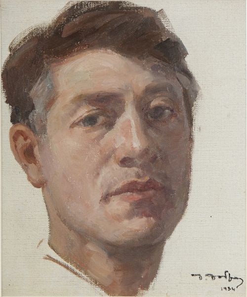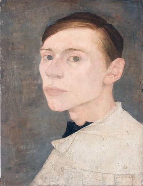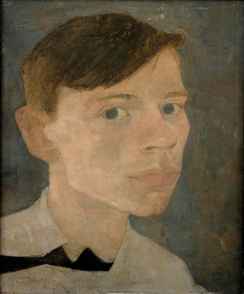 Jan Mankes painted this self-portrait, we’re not sure exactly when, in oil paint, and I’m really drawn to its quiet mood. There’s a kind of gentleness in the way the paint is applied, like he’s feeling his way around his own image. Up close, the surface has this lovely, soft texture, almost like it's been buffed. The colors are muted, mostly earth tones, which gives the whole thing a very calm feeling. Look at the way he's painted his skin – it's not just one color, but a mix of pinks, grays, and even a touch of green, which creates a real sense of depth. It's especially noticeable around the eyes, where you can see these subtle shifts in tone that give him this really intense, but also kind of melancholic, gaze. That gaze kind of reminds me of Paula Modersohn-Becker, who also explored this kind of quiet introspection in her self-portraits. Ultimately, this painting is all about capturing a moment of quiet self-reflection. It's about seeing yourself, really seeing yourself, with all your complexities and contradictions.