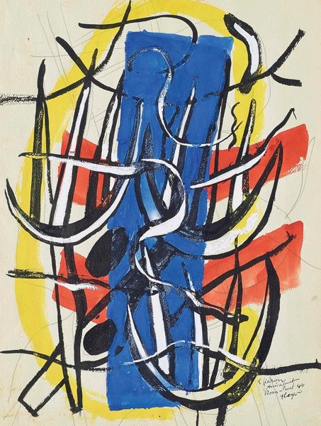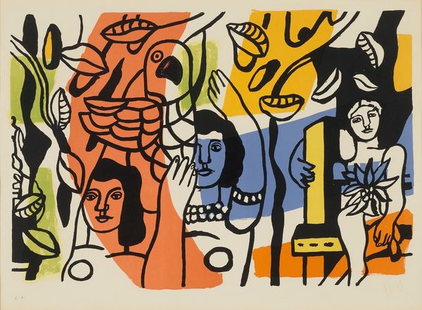 Fernand Léger’s “La Femme dans le paysage” presents a bold interplay of geometric abstraction and figuration, creating a dynamic visual experience. The composition is defined by stark contrasts of colour—fiery reds and yellows against cool blues—and the juxtaposition of hard-edged forms with the fluid lines of the depicted female figure. Léger’s work can be understood through the lens of structuralism, where the artwork functions as a system of signs. The wheel, the buildings, and the woman do not merely represent their real-world counterparts, but are reconfigured into a visual language. The use of these forms and symbols is deliberate, aiming to strip away the extraneous and focus on the essential structures that define our perception. Léger destabilizes traditional artistic values by presenting a world where human and mechanical forms are equally significant. The painting challenges fixed meanings, inviting us to engage with a new visual order. In its formal construction, the artwork compels us to look beyond the surface and consider the broader cultural and philosophical implications of representation itself.