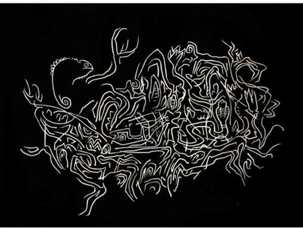 Editor: This is M.C. Escher’s "Dolphins" from 1923, done in ink and photography. It's a monochrome work with geometric abstraction. What strikes me is the stark contrast and almost dreamlike quality. What do you see in this piece? Curator: Well, given the date, 1923, and the geometric elements alongside recognizable, albeit stylized, figures like the dolphins, I immediately think about the societal shifts following the First World War. This artwork exists within the period where artists were grappling with industrialization. Editor: Industrialization, yes, I can see how the hard lines might reflect that. Curator: Precisely. There is this stark contrast between the flowing lines of the ‘dolphins’ and the sharp geometric abstractions, raising a critical question: Is Escher commenting on humanity's relationship with nature as it became increasingly mediated by technology and machinery? What message might those contrasting geometric and organic shapes be trying to convey? Editor: Perhaps it's about the imposition of order on the natural world? Or the way technology both reveals and obscures the beauty of nature? Curator: Exactly. It's also worth considering the rise of mass production, especially of photography. How did artists working with ink and drawing situate their work within this new landscape of reproductive technologies? This piece really sparks reflection on shifting cultural landscapes. Editor: I never thought about the industrialization and photography aspects, thanks! Curator: Art reveals so much more when considered within its social and historical context. It transforms how we interpret even the simplest-seeming forms. Editor: Definitely. This conversation opened up so many new doors. I'm looking forward to exploring how Escher's other work addresses these topics!
