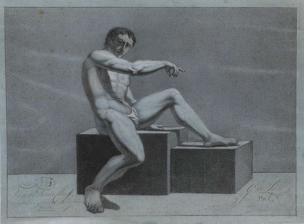 Curator: Pieter de Jode I created this drawing, "Tekenvoorbeeld van een naakte op zijn rug liggende man," which translates to "Drawing example of a nude man lying on his back," around 1629. It's currently held in the Rijksmuseum. Editor: He looks...uncomfortable. It's beautifully rendered in ink on paper, you can almost feel the texture, but there's a tension in his posture. Almost like he’s resisting the pose itself. Curator: Interesting. Given the Baroque context, this probably stems from academic art traditions that promoted specific poses. The chiaroscuro is quite prominent here. Notice how the light and shadow define his musculature. Editor: Yes, that interplay is intense. But who decides what’s an "ideal" or a "correct" way to represent a body, right? Was this used as a teaching example, normalizing a certain...hyper-masculine physique for aspiring artists? Curator: Quite possibly. Academic art, while aiming for beauty and accuracy, can also reflect and reinforce societal ideals. Consider the inherent power dynamics – the artist observing, the model posed, the values projected. And then think about access. Who was included and who was excluded from art education. Editor: Exactly! And in that exclusion we lose so much – different perspectives, different kinds of bodies, different experiences of being. I wonder about the model in this case, too. His agency in all of this, his own thoughts as he had to hold this very contorted pose, almost defiant expression. Curator: The drawing prompts us to ask all these questions – who creates, who is represented, and whose perspectives are valued? We read beyond mere depiction of muscles and anatomy. Editor: Definitely. It reminds me to think critically not just about the aesthetics of historical artwork, but also about the stories they tell, intentionally or unintentionally. Curator: Art becomes an invitation. A chance to examine beauty with wisdom, nuance, and maybe even a bit of playful mischief. Editor: Yes. So true.