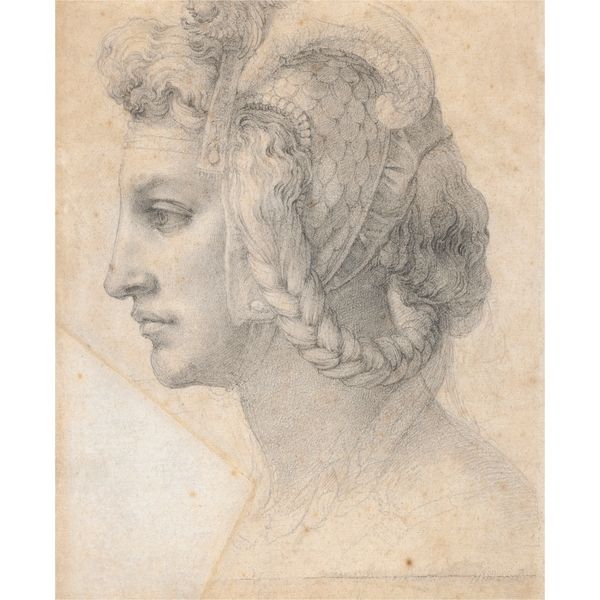 Curator: Welcome. Before us, we have "Head of a Woman in Profile," a 16th-century drawing currently residing here at the Metropolitan Museum of Art. It's rendered in colored pencil. Editor: Oh, she’s lovely! There's an ethereal quality about her. Like a dream caught in chalk, fading around the edges. Very Botticelli-esque, wouldn't you say? Curator: Absolutely. Profile portraits during the Renaissance were typically reserved for the elite— a display of status and perhaps, intellect. This work, while unsigned, certainly reflects that aspiration to classical ideals, the gentle curves and idealized features… Editor: The simplicity, though, that really sings to me. No grand jewelry, just a single earring. It feels more intimate, almost like glimpsing a private moment of quiet reflection. Is she posing or just caught in thought? Curator: That's precisely the question the piece provokes, I think. These drawings offer a chance to encounter the sitter in a less formal guise than painted portraits might allow, less staged. While profile views in the Renaissance became popular because, in part, it's easier for less experienced artists, here, though, there is a conscious decision made to depict her this way. Editor: Hmm, perhaps an evasion then. She offers us a glimpse but holds back completely. A romantic fragment rescued from time. A ghost made physical, ever so fleetingly. I mean, with colored pencil, you are never quite solid, right? Always on the verge of smudging back into nothingness… Curator: Indeed. Consider the context of courtly love. A woman's profile might have served as both a visual representation of beauty and an emblem of a carefully constructed persona within very particular societal dynamics. It becomes not just portraiture but propaganda. Editor: That's such a cold word for something so delicate, but yeah I get you. All this pomp. Whereas me, I like to imagine a love poem forming, as it's captured: "…profile of a statue brought to life; the gentle curves and shades…" You know. Curator: A rather good poem at that. Whether documentation or dream, it offers a brief, captivating encounter, one that transports us, however briefly, to another world, which continues to invite varied interpretation from art lovers from very different places, perspectives and needs. Editor: Right. So go and catch a breath there near to our profile now – go make a day-dream of your own.