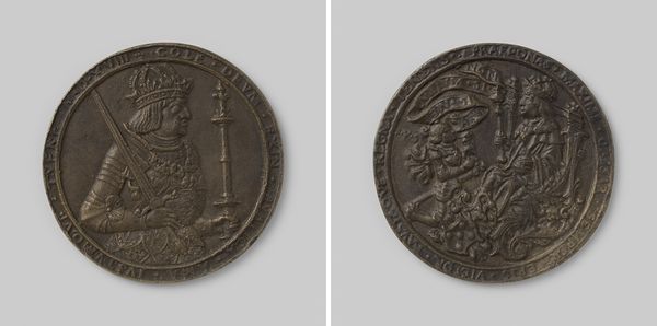 This bronze medal, celebrating Antoine Ferdinand de Brouckhoven, was struck in 1668 by an anonymous artist. Its imagery and making offer insight into the economic and political structures of the time. The medal’s creation involved skilled metalworking, likely using techniques like casting and engraving. The designs would have been carefully incised into a die, from which the medals were then stamped. The crispness of the images speaks to the expertise of the maker, but also to the industrial processes that facilitated their reproduction, and thus the dissemination of political messaging. The choice of bronze, a durable yet relatively common metal, speaks to the medal's function as a widely distributed symbol of civic pride. Note that the medal commemorates Brouckhoven's role as the intendant of the Brussels canal. This seemingly simple object embodies a complex interplay of art, industry, and political power. It reminds us that even the most functional objects can carry significant cultural meaning, challenging any rigid boundary between art and craft.