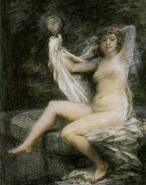 Henri Fantin-Latour painted Sommeil de Diane using oil on canvas. The moon goddess Diana, or Artemis, is depicted here asleep in a forest, bathed in an ethereal moonlight. Diana's sleep is not just a moment of rest, but a symbolic representation of the cyclical relationship between light and darkness, activity and passivity. Consider the countless depictions of sleeping figures across art history, from Endymion to Ariadne. Sleep represents vulnerability, a surrender to the subconscious. Here, Diana's sleep evokes a deep, primal connection to the natural world. Think of the emotional resonance with which we remember those images of the sleeping Ariadne, abandoned by Theseus, an abandonment that cuts to the very core of our beings. This image touches on the powerful, collective memory of mythological figures, continuously resurfacing and adapting to the psychological landscape of different eras. Diana, asleep, vulnerable yet still powerful, engages us on a deeply subconscious level.