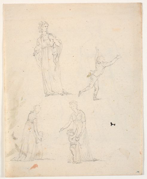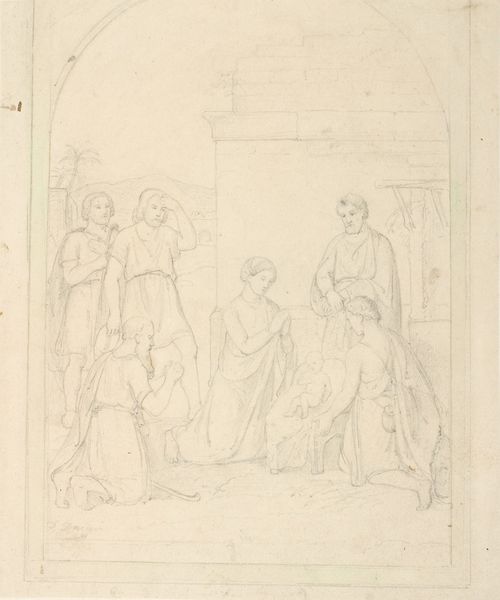 Dankvart Dreyer created this drawing, titled 'Two Holy Figures,' using pencil on paper, likely in Denmark during the mid-19th century. The sketch presents us with two ecclesiastic figures, one perhaps a bishop, identified by his mitre and cross, and the other a saint. Both are adorned with halos. It is interesting to consider the institutional role of art, particularly in a country like Denmark, which underwent significant religious and social changes during Dreyer's lifetime. Religious imagery, like that seen here, would have played a pivotal role in shaping cultural values. To fully understand the work, one should consider the visual codes and historical associations embedded within it. Resources such as religious texts, historical records of Danish society, and the archives of institutions like the Statens Museum for Kunst can help contextualize this piece. The meaning of Dreyer’s art is contingent on this deeper social and institutional understanding.
