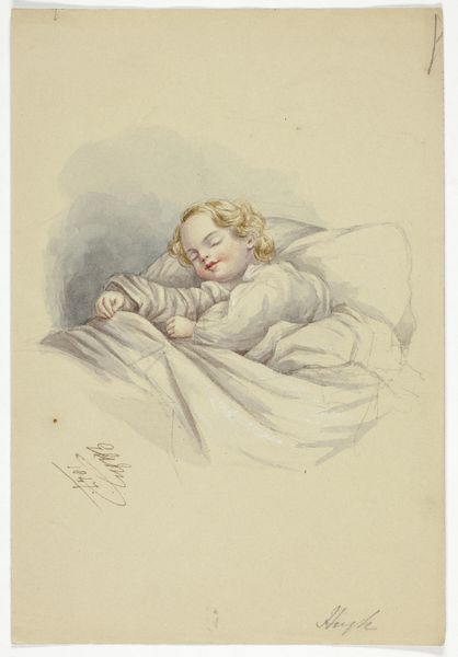 Editor: Here we have Adolph Menzel's "An Infant Asleep in His Crib," created in 1848 using pastels. It's such a tender scene; you can almost feel the stillness of the room. What are your thoughts on this intimate portrayal? Curator: Considering Menzel’s later social realism, it’s vital to understand the context of pastel as a domestic medium. In 1848, revolution brewed across Europe, yet here's a privileged vision of idealized domesticity rendered in readily available, portable materials. Was pastel then a quiet act of resistance against monumental, public art, suggesting a re-centering around the value of the domestic? Editor: That's a fascinating way to consider it. So, the *choice* of materials has a statement of its own to make about where the artist places value. I see how the "portable" nature of the material informs this perspective too! Curator: Exactly! It prompts a consideration of *who* consumes such art. Would the pastel medium lend itself to middle class consumers over the wealthy? And, how does Menzel’s rendering of fabric and linen - common material then - reflect a focus on the material conditions of infant care? The rendering is beautiful in itself, but the chosen media may point to how the scene itself is a constructed reality. Editor: That makes you think about the whole art market in this context. Considering his material choices adds such an amazing layer to understanding Menzel's vision. I'll never look at pastel the same way. Curator: Indeed. And the beauty lies precisely in these considerations of what is, on the surface, just an innocent and gentle depiction.