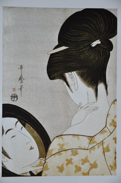 Kitagawa Utamaro’s print of Okita was made with woodblocks and colored inks, using a process that was both artistic and industrial. The key block, carved with the outlines, would have been printed first, and then additional blocks applied to create areas of color. Note the delicate gradations of tone in Okita’s face, achieved by careful inking of the blocks and application of pressure. This was not simply a mechanical process, but a skilled craft. Utamaro was one of the great masters of ukiyo-e printmaking, which flourished in the Edo period. The subject matter – beautiful women, actors, and landscapes – spoke to the growing consumer culture of Japan's urban centers. Prints like these were relatively inexpensive and widely available, yet they demanded tremendous skill and a keen understanding of materials. Considering Utamaro’s technique brings us closer to the world in which he worked, and helps us appreciate the artistry involved in this popular art form.