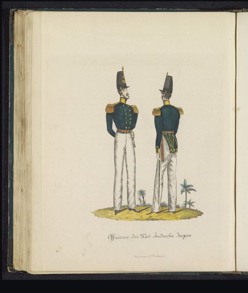 Louis Salomon Leman made this print in 1845, depicting the uniform of officers in the Dutch East Indies infantry. It's not just a fashion plate, but a window into the social and political landscape of the time. The officers’ crisp, European-style uniforms, set against a subtly suggested tropical backdrop, speak volumes about colonial power. The Dutch East Indies, a colony that was run by the Dutch East India Company, became a crucial site of resource extraction. Prints like this, circulated within military and administrative circles, reinforced a sense of order and control. But they also reveal the inherent tension between the colonizers and the colonized. Visual codes such as these served to reinforce a specific hierarchy of power, where European military prowess was visually asserted as the legitimate authority. To fully understand this image, we need to delve into the archives, examining military records, colonial administrative documents, and personal accounts. Only then can we appreciate the complex interplay of power, representation, and resistance that this seemingly simple print encapsulates.