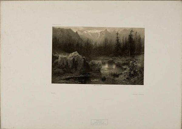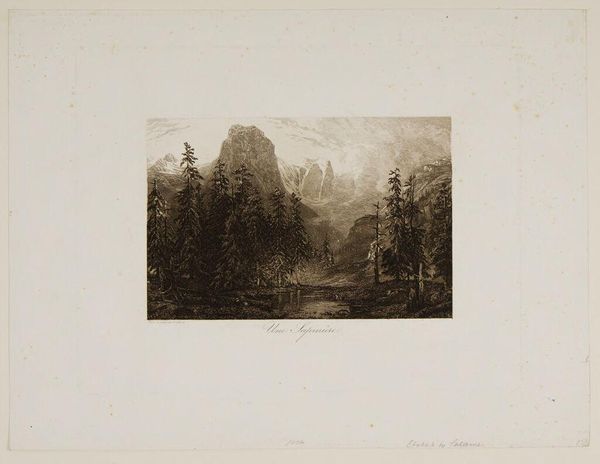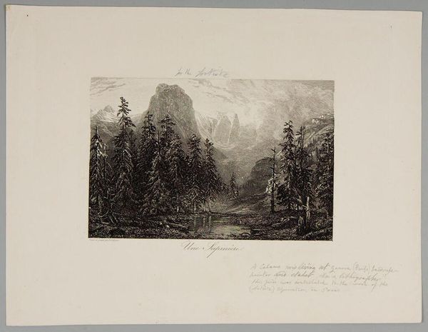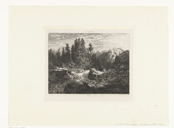 Curator: Alexandre Calame, a Swiss artist born in 1810, created this piece, "Landscape Number 21." Doesn't it just breathe with a certain solemnity? Editor: It does have that romantic era weightiness, doesn't it? All that sublime nature...but I wonder, who exactly benefits from these idealized landscapes? Curator: Well, perhaps the viewer, transported to a tranquil space. There's a real beauty in the dramatic light and the textures he coaxes from the medium. Editor: Beauty, yes, but also exclusion. These vistas often mask the labor and displacement inherent to their creation and consumption. Curator: I can appreciate that perspective. Still, I'm drawn to the craftsmanship, the artist's hand so evident in the detailed rendering of the waterfall and trees. Editor: And that craftsmanship served particular ideologies. These landscapes reinforced notions of national identity and ownership. Curator: Maybe. Or maybe it was Calame's way of connecting with something larger than himself. Editor: Perhaps both, or neither, it gives us something to think about. Curator: Exactly, it's still lovely, after all.
