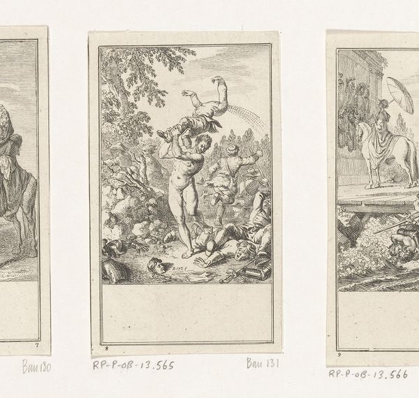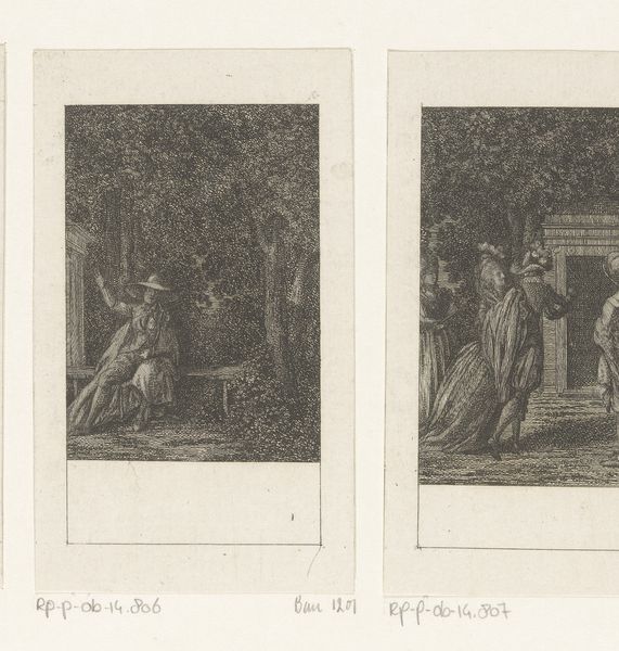 Editor: We're looking at Daniel Nikolaus Chodowiecki's engraving, "Prometheus wekt Pandora tot leven," from 1781. It’s quite a detailed little scene. I am struck by how still everyone is. What do you see in this piece, and how does it fit within its time? Curator: Oh, it whispers tales of grand ideals! Neoclassicism was all the rage, and you see it here. A world where rationality reigns and classical myths come alive again to teach us modern lessons, rendered in painstaking detail thanks to the engraving medium. Chodowiecki takes a crack at the creation of Pandora— a being of immense potential and also, perhaps, immense danger, given what we know of the myth, right? It's a loaded image! How do you feel about it as a depiction of the act of creation? Editor: It feels staged, a bit like theater. Is that deliberate? And is the stillness part of that Neoclassical composure you mentioned? Curator: Exactly! And consider the bareness of Pandora—pure, unadorned potential—compared to Prometheus's active pose, bestowing that vital spark of life. Chodowiecki is clearly making a statement about agency and inspiration, framing Pandora not as some passive recipient, but as the focal point. Is she about to be awoken by him? What does that evoke for you? Editor: Hmmm, agency. But the male gaze feels strong here, despite her potential power. Is there a way to reconcile those opposing energies, in your opinion? Curator: Precisely! The era reveled in its contradictions! Look at Pandora’s placid composure! The male gaze versus feminine strength - Neoclassicism loved presenting paradoxes for our pondering, it is after all an aesthetic debate, if we may. These tiny engravings served to spark those debates everywhere they appeared! Editor: I see! So, it's less about a definitive statement and more about prompting questions? It really shifts how I viewed it. Curator: Art is, ultimately, that wonderful space for questioning, for feeling and ultimately for connecting.