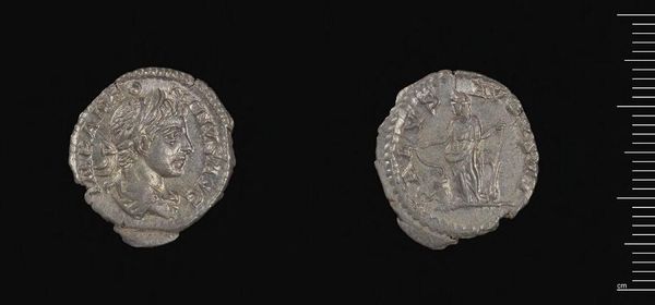 Editor: Here we have a silver Denarius of Septimius Severus. What strikes me is the fact that even something as small as a coin can tell us so much. What can you tell me about this piece? Curator: Consider the material. Silver, mined and refined, then stamped with the Emperor’s image and a goddess. It speaks volumes about Roman control of resources and their dissemination of power. Who mined the silver? What was the labor like? These are the questions it brings up for me. Editor: It's amazing to think about the labor behind something we often overlook. Thanks for opening my eyes to a new way to look at art! Curator: Indeed. Materiality often reveals hidden histories.