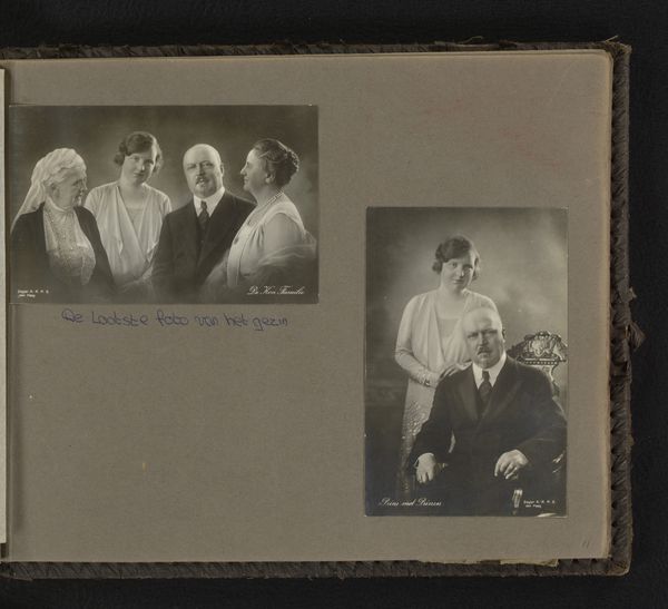 This is a black and white photograph of the Wachenheimer family, probably taken in January 1939. The print itself is quite small and mounted on card, which gives it a sense of being a precious object, carefully handled. Photography in this period was becoming increasingly accessible, yet it remained a specialized craft, demanding technical expertise in developing and printing. Looking at this image, you can almost imagine the photographer in their darkroom, carefully manipulating chemicals and light to bring this family portrait to life. The family have dressed in their best attire, their clothing carefully made by skilled tailors and seamstresses; you can see the quality and craftsmanship in the fabrics and the way they drape on the body. The photograph serves as a poignant reminder of the labor and skill involved in creating even seemingly simple objects, and the way that these skills were valued and passed down through generations. It challenges our assumptions about the divide between art, craft, and everyday life.